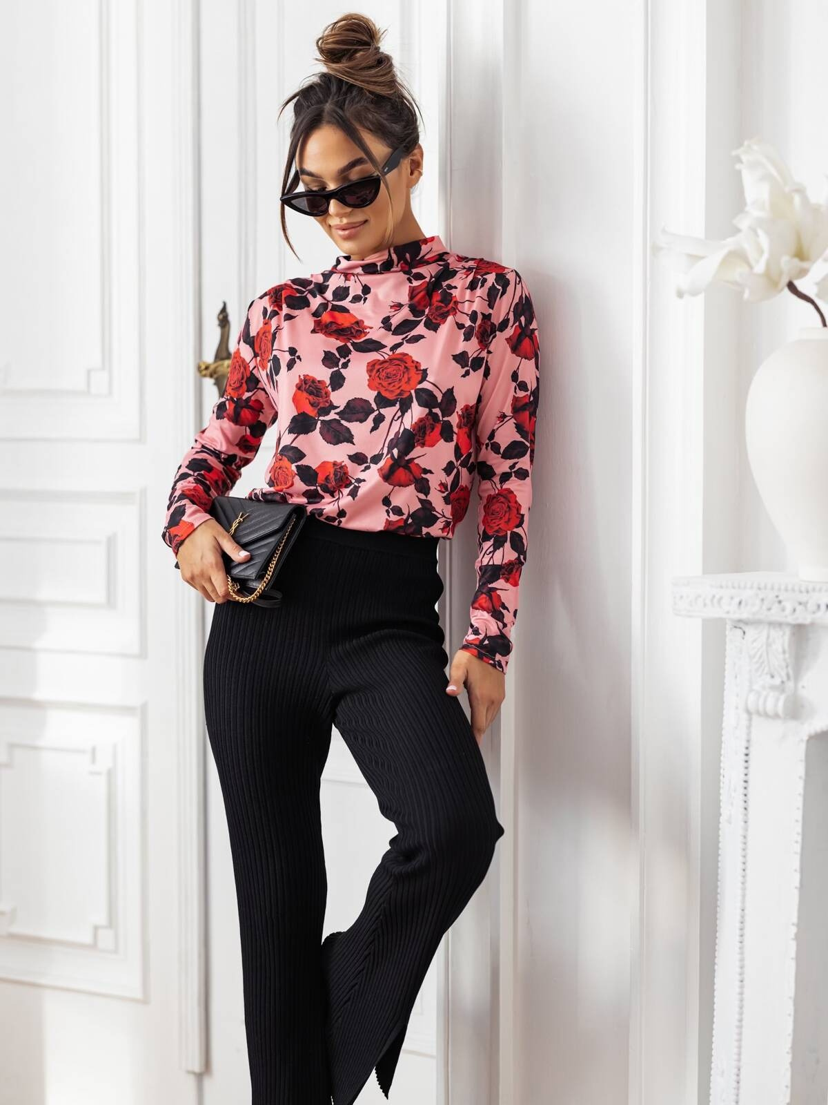 BLUZKA Z MOTYWEM KWIATÓW- RÓŻOWA