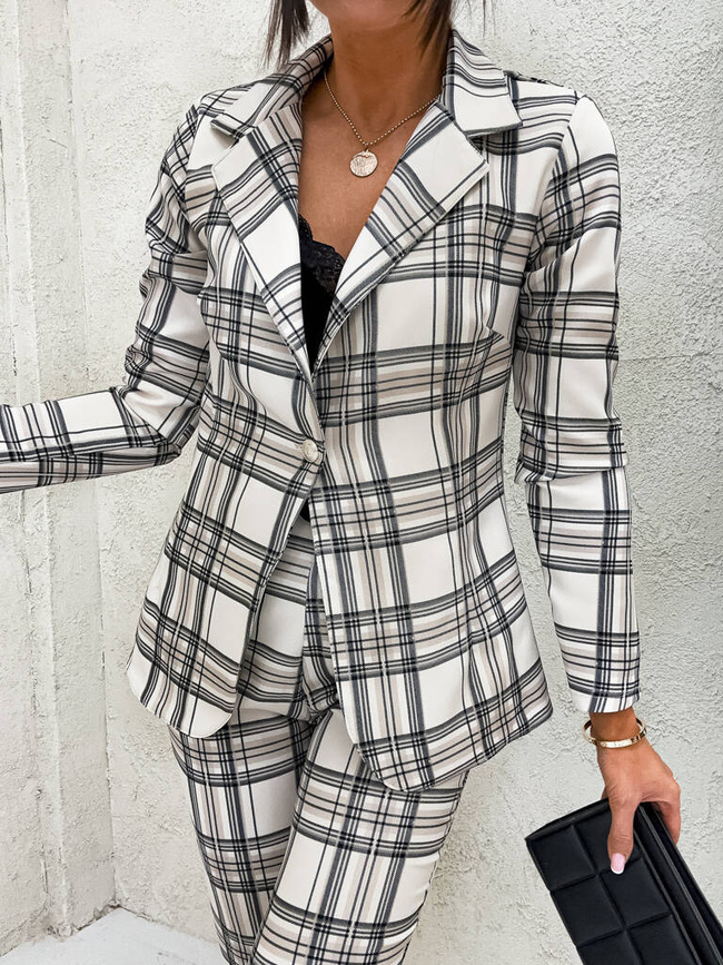 KOMPLET W KRATĘ MARYNARKA+ SPODNIE- BEŻOWY