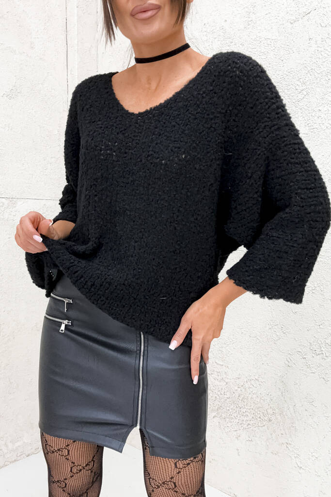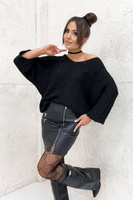 FUTRZANY SWETER NIETOPERZ Z DEKOLTEM W SEREK- CZARNY