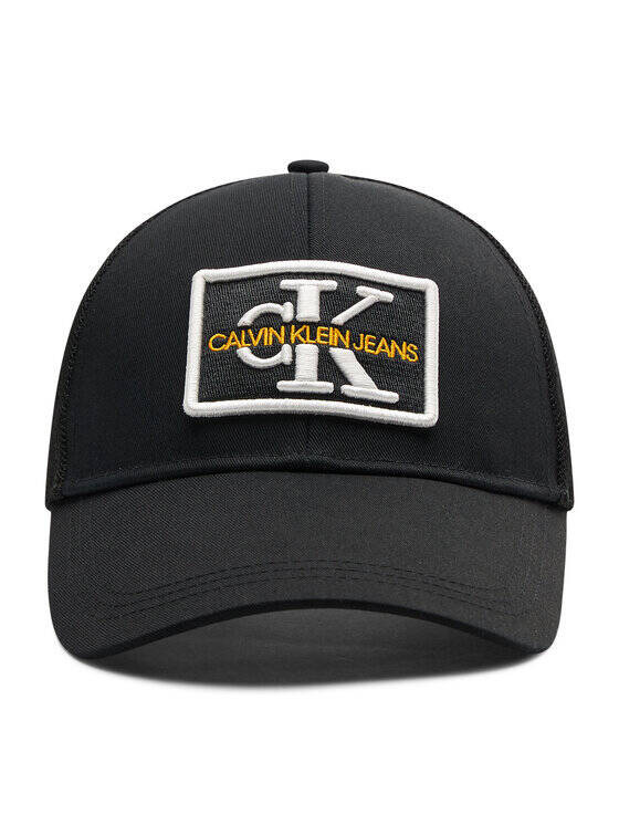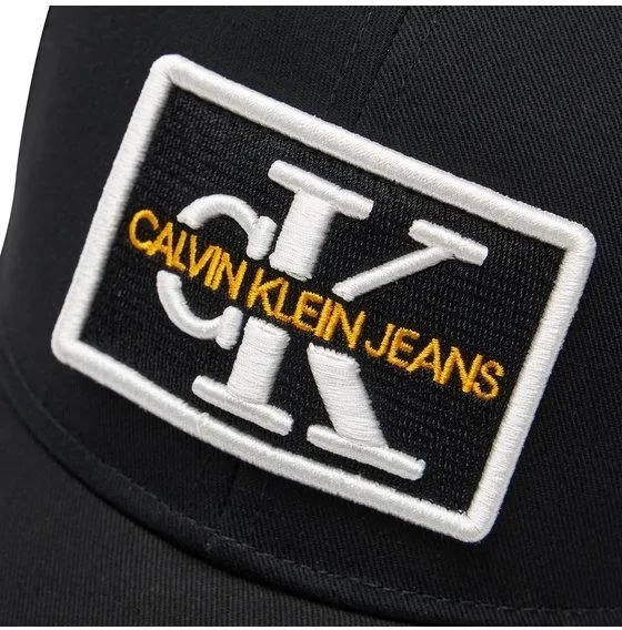 Czapka z daszkiem typu baseball z kolekcji Calvin Klein Jeans. Model wykonany z tkaniny z aplikacją.