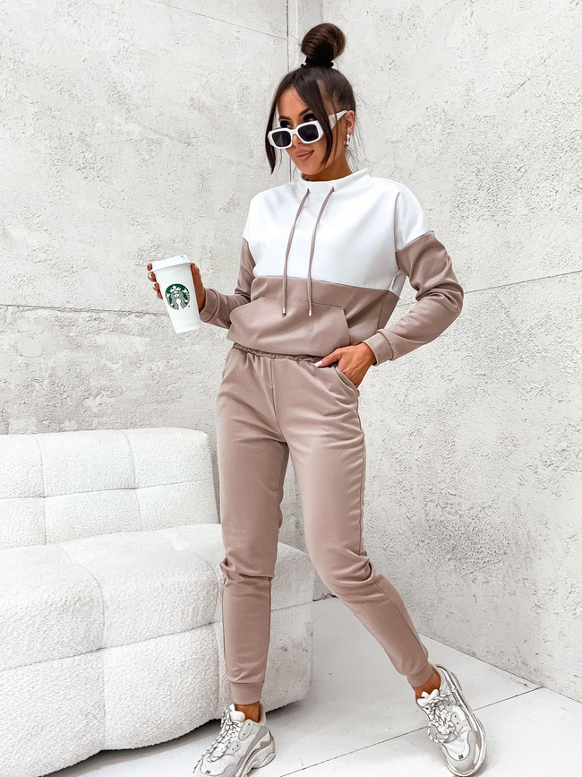 BEŻOWY KOMPLET DRESOWY BLUZA ZE SZNURKAMI+ SPODNIE