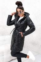 KURTKA PIKOWANA WIĄZANA W PASIE Z NASZYWKĄ NA RĘKAWIE- BEŻOWA