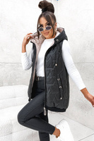 ASYMETRYCZNA KAMIZELKA Z NASZYWKĄ NA KAPTURZE- CZARNA