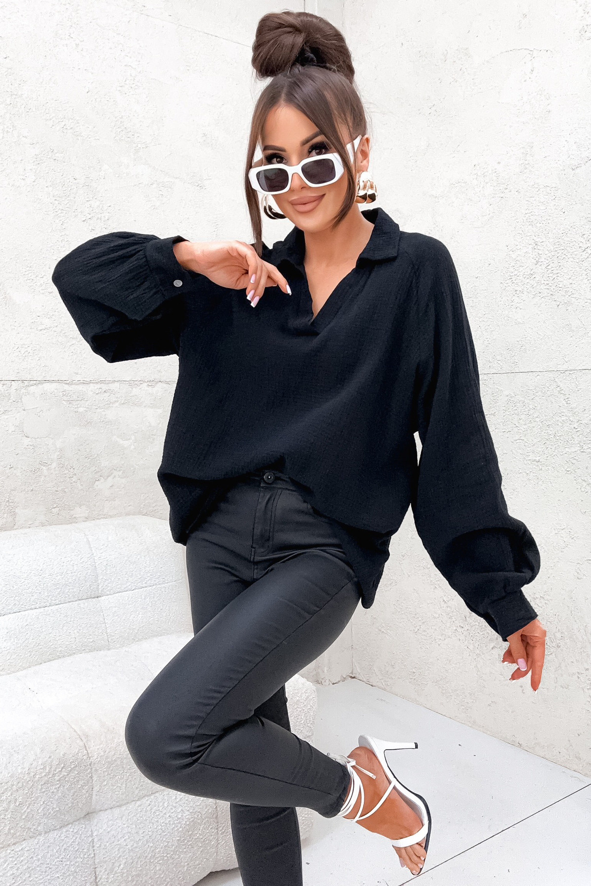 BLUZKA KOSZULOWA MUŚLINOWA- CZARNA