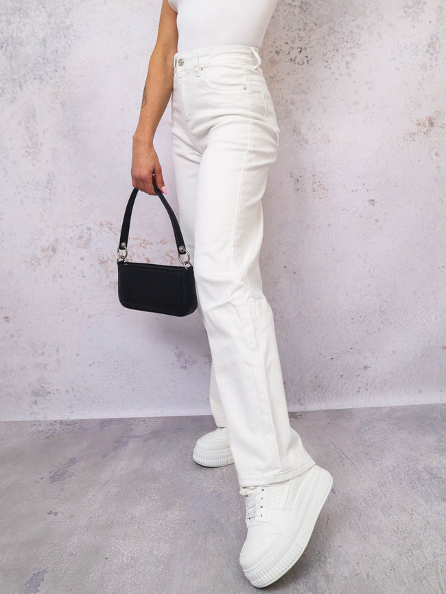 BIAŁE SPODNIE JEANSOWE Z SZEROKIMI NOGAWKAMI