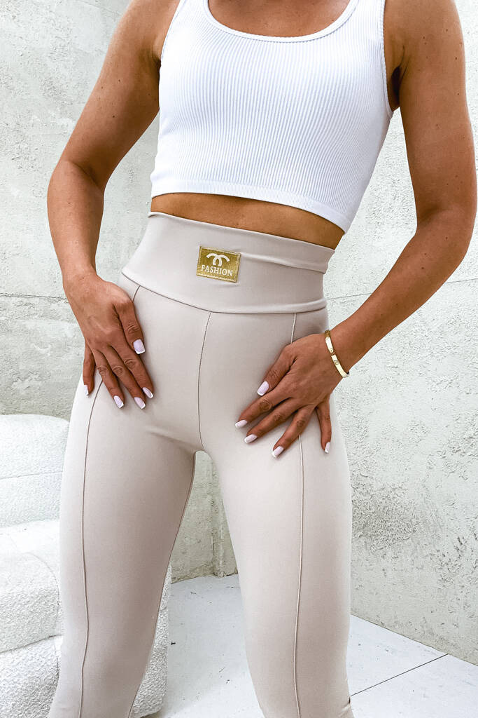 LEGGINSY Z MARSZCZENIEM I ZAMKIEM- BEŻOWE