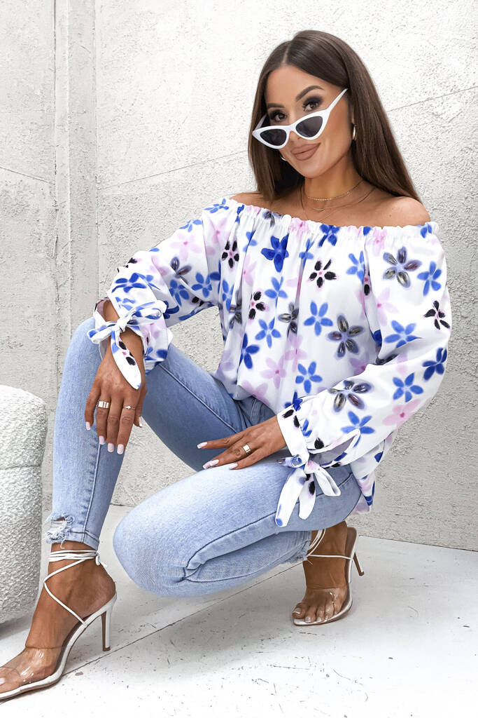 BLUZKA HISZPANKA W KWIATY Z WIĄZANIEM NA RĘKAWACH- BIAŁA