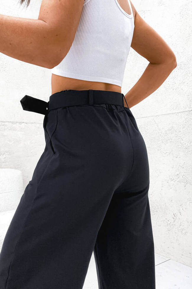 SPODNIE BAWEŁNIANE ONESIZE Z SZEROKĄ NOGAWKĄ I PASKIEM- CZARNE