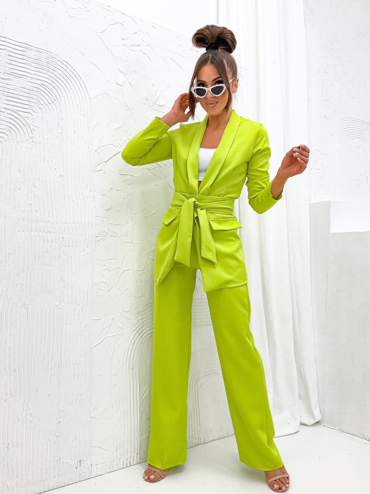 ELEGANCKI GARNITUR Z WIĄZANIEM W PASIE-LIMONKOWY