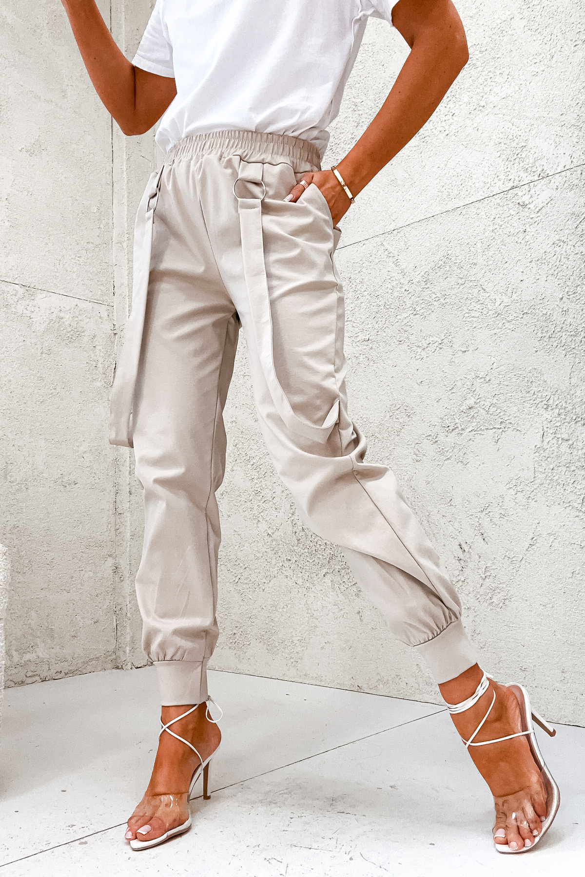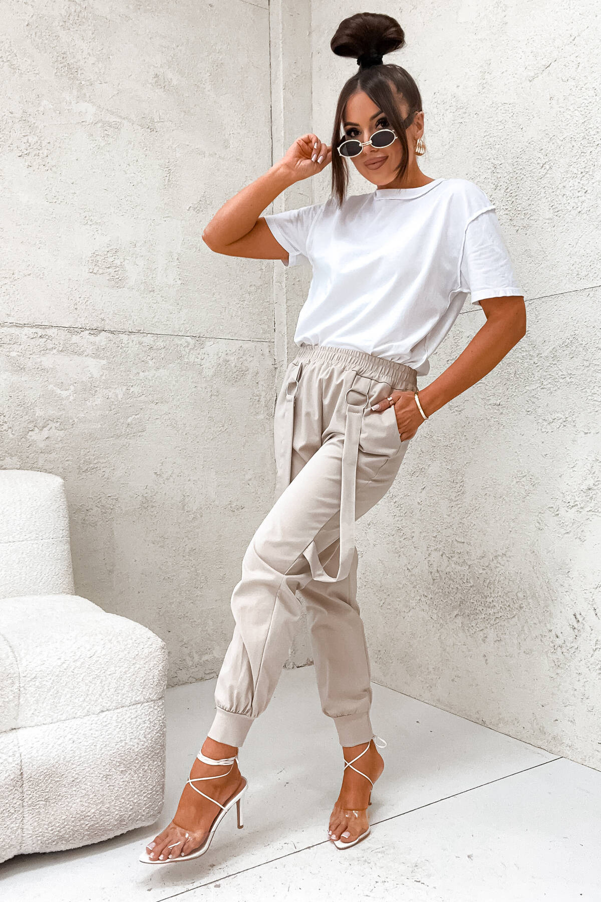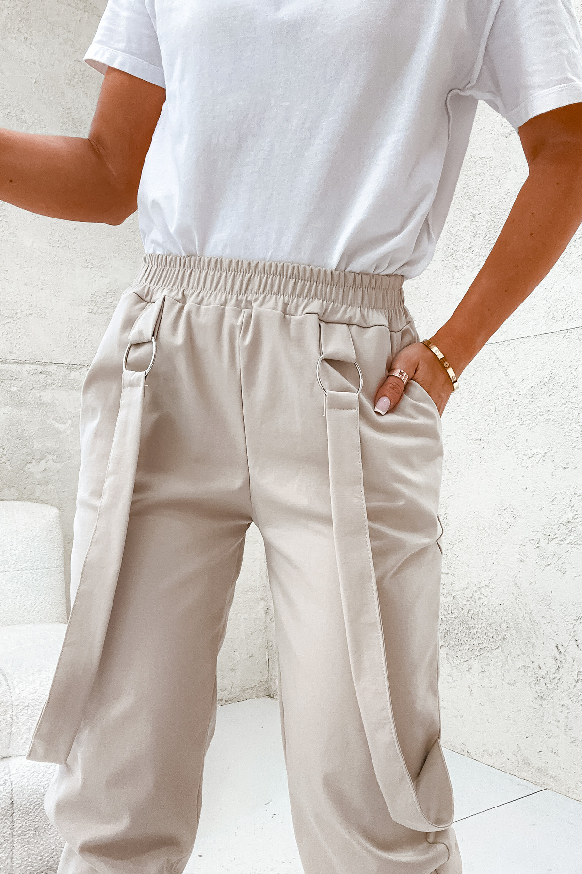 SPODNIE ONESIZE ZE ŚCIĄGACZAMI NA NOGAWCE- BEŻOWE