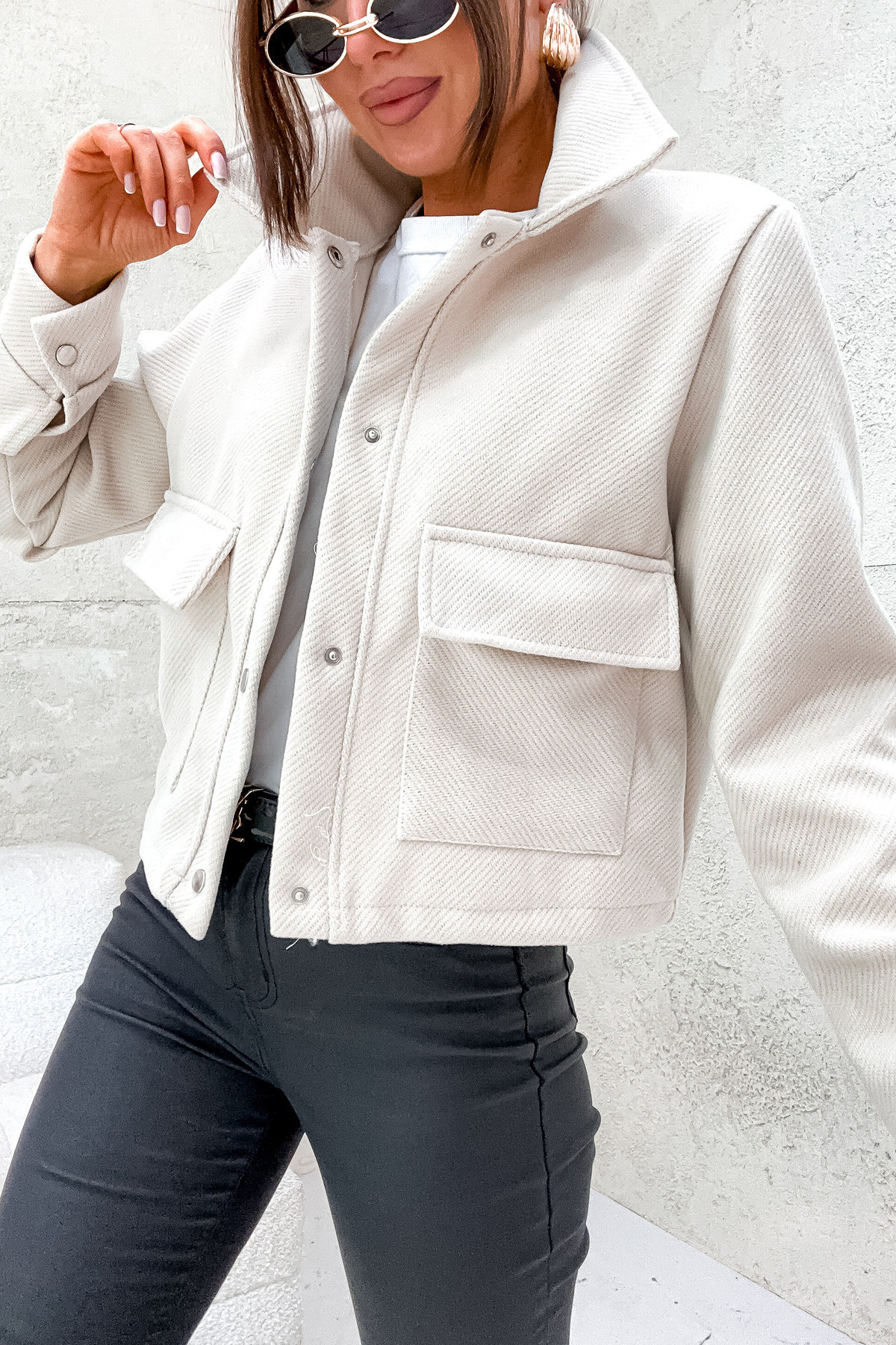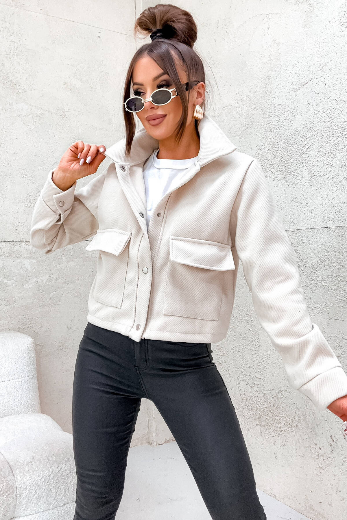 KRÓTKA KURTKA Z KIESZENIAMI ZAPINANA NA NAPY-BEŻOWA