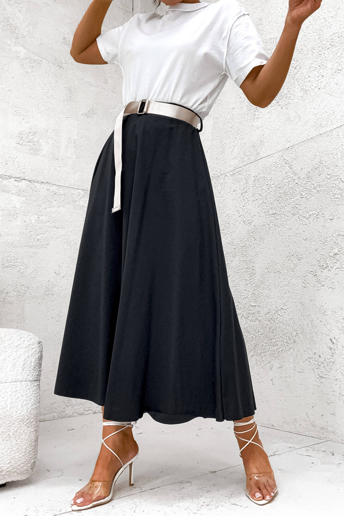 ROZKLOSZOWANA BAWEŁNIANA SPÓDNICA Z PASKIEM- CZARNA