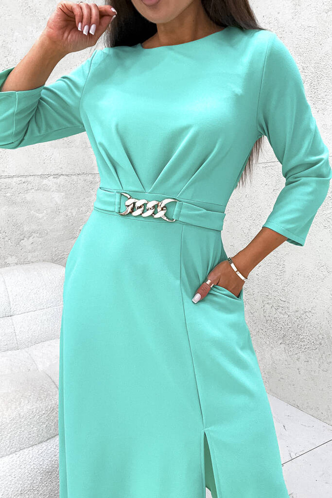 SUKIENKA MIDI Z ROZPORKIEM+ PASEK- ZIELONA