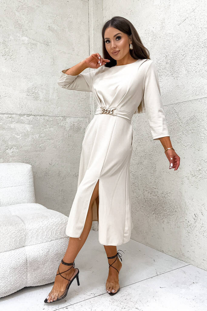SUKIENKA MIDI Z ROZPORKIEM+ PASEK- BEŻOWA