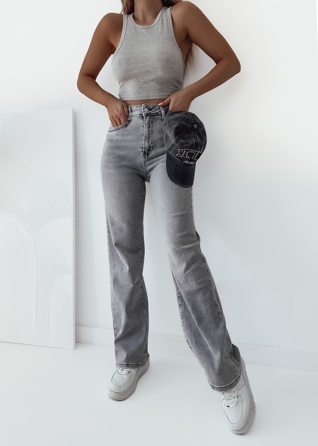 SZARE SPODNIE JEANSOWE Z SZEROKIMI NOGAWKAMI