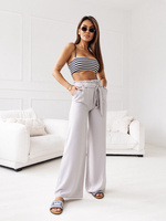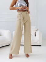 SPODNIE SZEROKIE Z GUMĄ W PASIE+PASEK- BEŻOWE