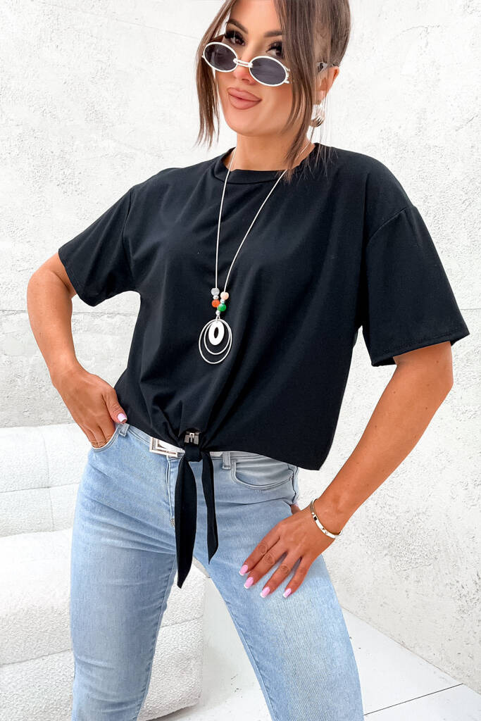 BLUZKA Z WIĄZANIEM NA DOLE + WISIOREK- CZARNA