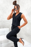 KOMPLET KAMIZELKA NA GUZIKI I SPODNIE -CZARNY