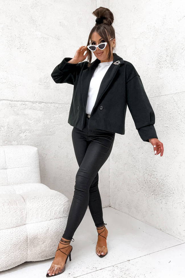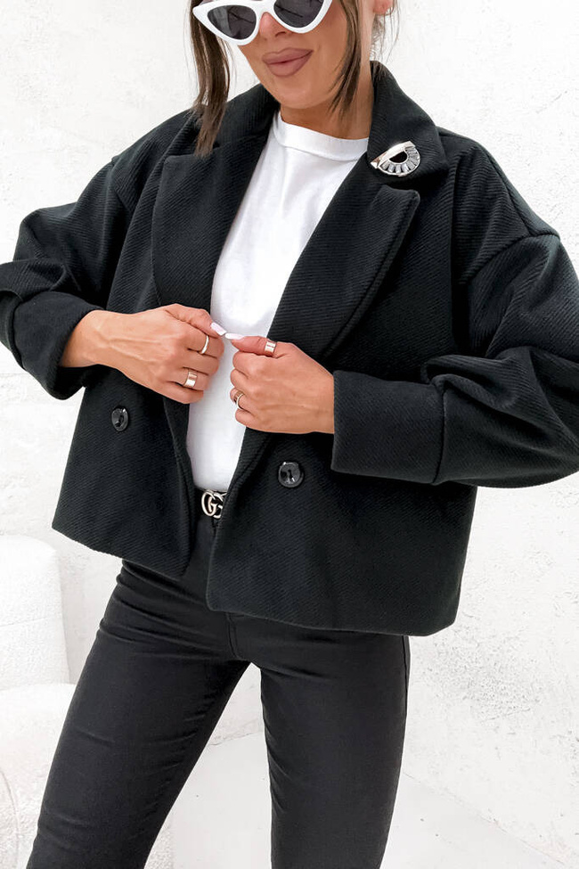 KURTKA DWURZĘDOWA O FASONIE MARYNARKI Z BROSZKĄ- CZARNA