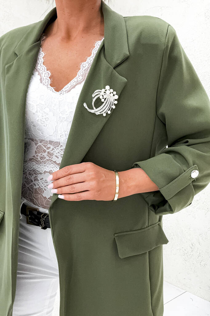 MARYNARKA BEZ ZAPIĘCIA Z BROSZKĄ- KHAKI