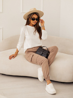 KOMPLET BLUZKA Z OZDOBNĄ KIESZONKĄ+ SPODNIE BOJÓWKI- BRĄZOWY