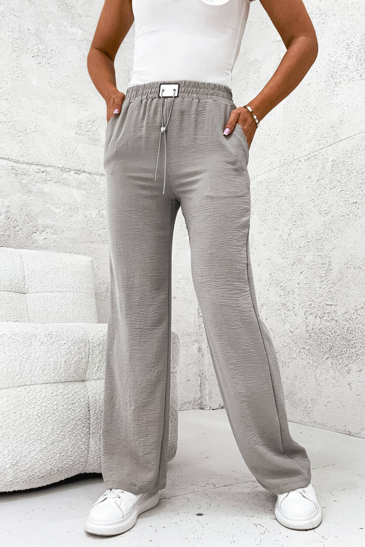 SPODNIE MATERIAŁOWE Z SZEROKĄ NOGAWKĄ I ŁAŃCUSZKIEM W PASIE- BEŻOWE