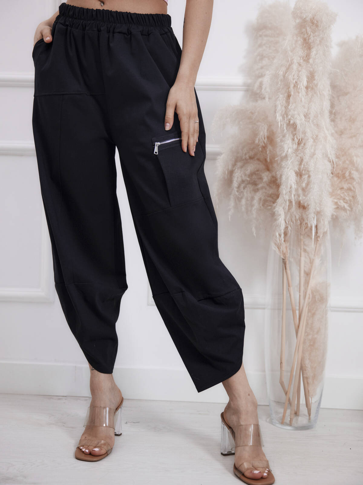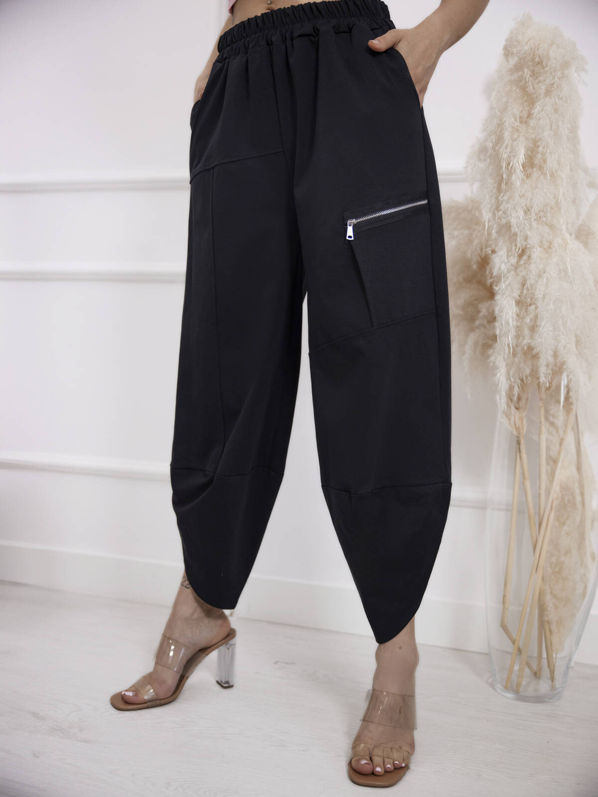 SPODNIE DRESOWE SZEROKIE Z ZAMKIEM NA NOGAWCE- CZARNE