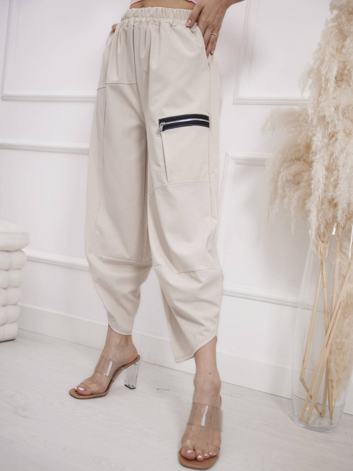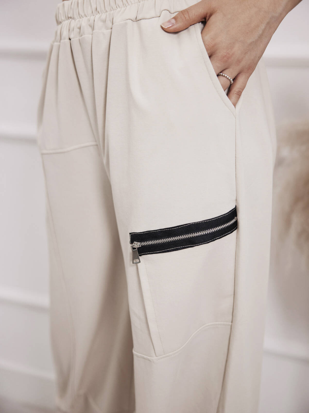 SPODNIE DRESOWE SZEROKIE Z ZAMKIEM NA NOGAWCE-JASNO BEŻOWE