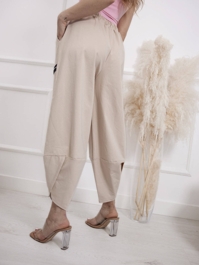 SPODNIE DRESOWE SZEROKIE Z ZAMKIEM NA NOGAWCE- BEŻOWE