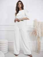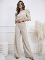 KOMPLET SPODNIE+ TOP Z BUFKAMI ZAPINANY NA GUZIKI- BEŻOWY