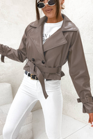 KURTKA KRÓTKI TRENCZ Z IMITACJI SKÓRY- BEŻOWA