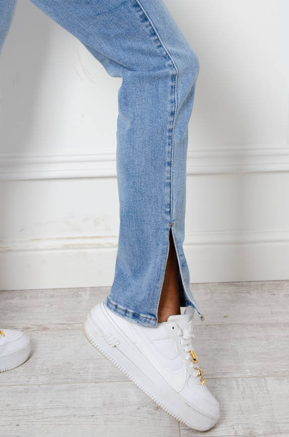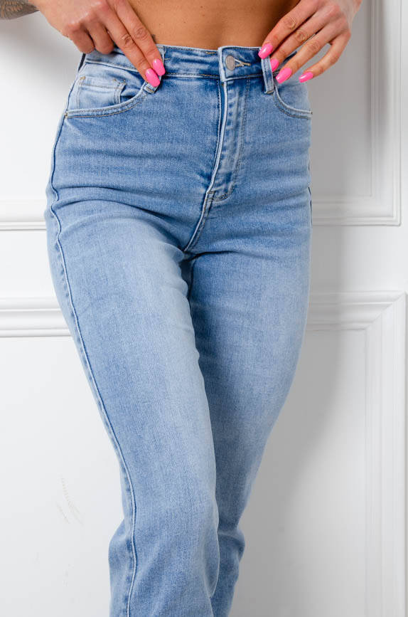 SPODNIE JEANSOWE Z WYSOKIM STANEM I WYCIĘCIEM NA NAGAWCE