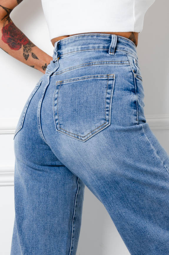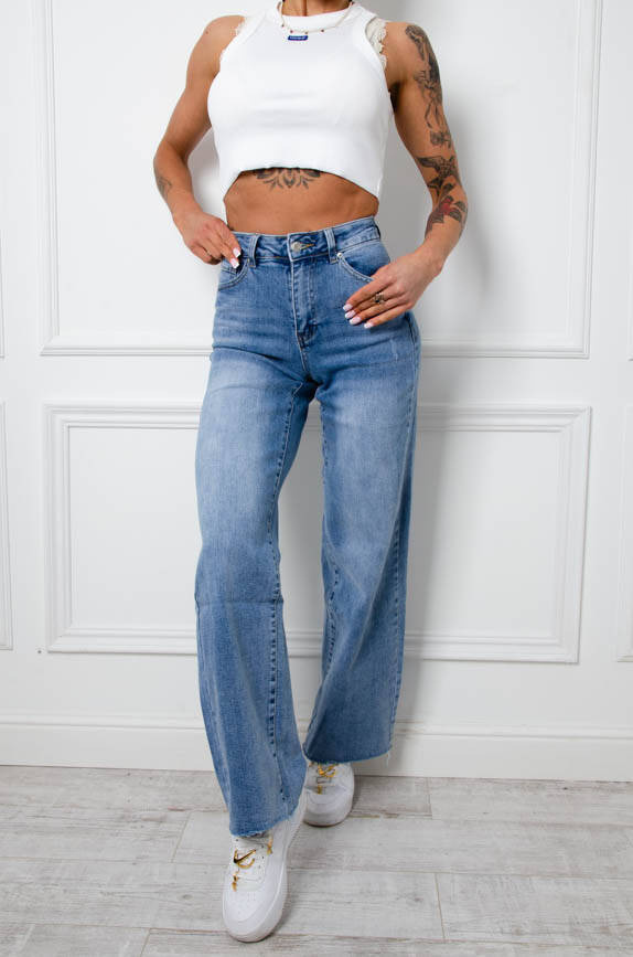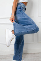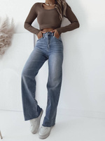 JASNE SPODNIE JEANSOWE Z SUROWYMI,SZEROKIMI NOGAWKAMI I WYSOKIM STANEM