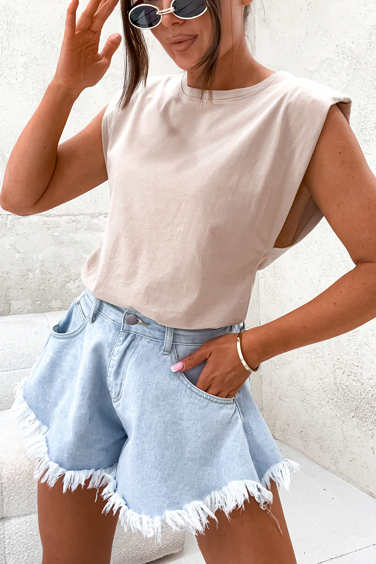 T-SHIRT BLUZKA Z PODUSZKAMI NA RAMIONACH- BEŻOWA