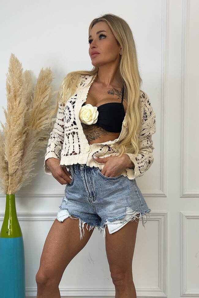 JEANSOWE SZORTY Z PRZETARCIAMI I WYSOKIM STANEM