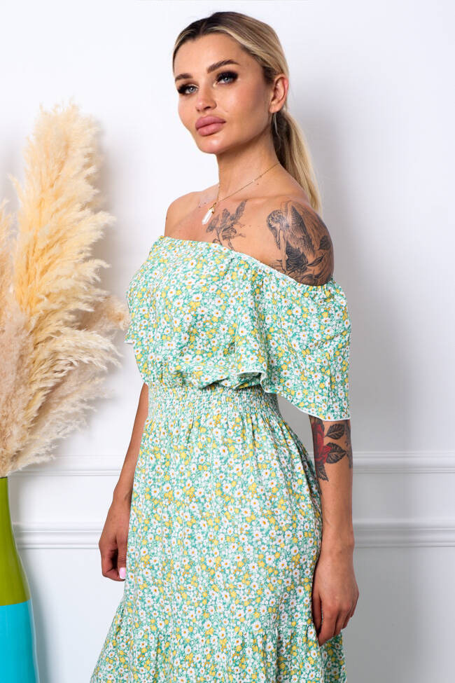 SUKIENKA MAXI HISZPANKA W KWIECISTY WZÓR- ZIELONA