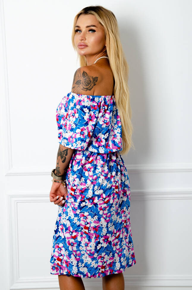 SUKIENKA MIDI HISZPANKA W KWIATY- NIEBIESKA