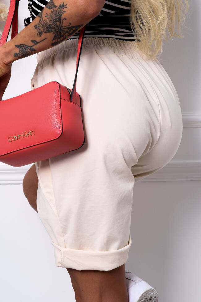 BAWEŁNIANE SPODENKI Z GUZIKAMI NA KIESZENI- EKRI