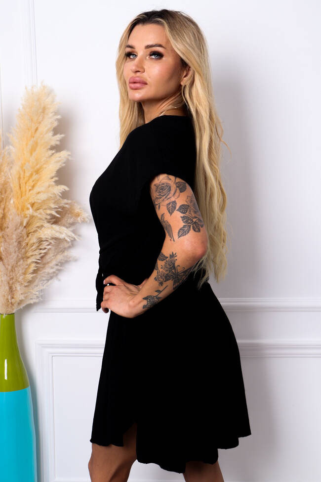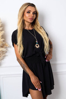 KOMPLET BLUZKA Z WIĄZANIEM I WISIORKIEM+ SPÓDNICO-SPODENKI- CZARNY