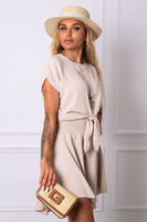 KOMPLET BLUZKA Z WIĄZANIEM I WISIORKIEM+ SPÓDNICO-SPODENKI- BEŻOWY