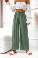OLIWKOWE SPODNIE Z SZEROKIMI PLISOWANYMI NOGAWKAMI-WYSOKI STAN