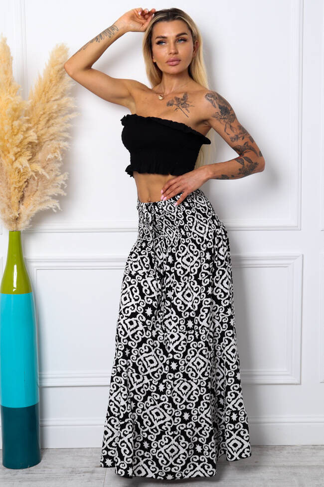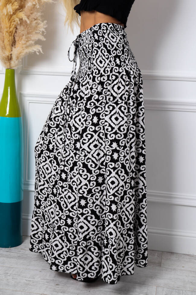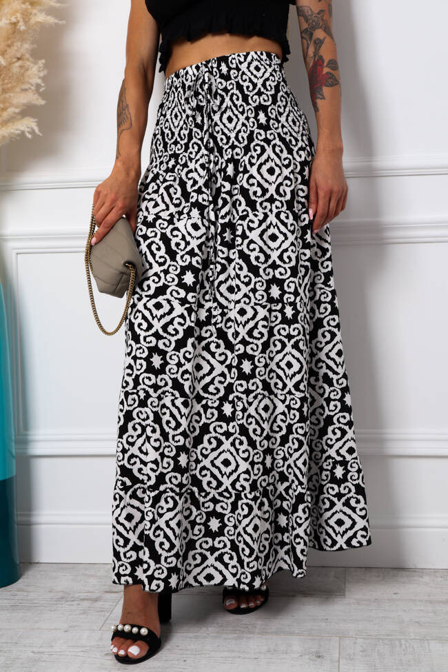 WZORZYSTA SPÓDNICA MAXI Z GUMĄ W PSIE- CZARNA