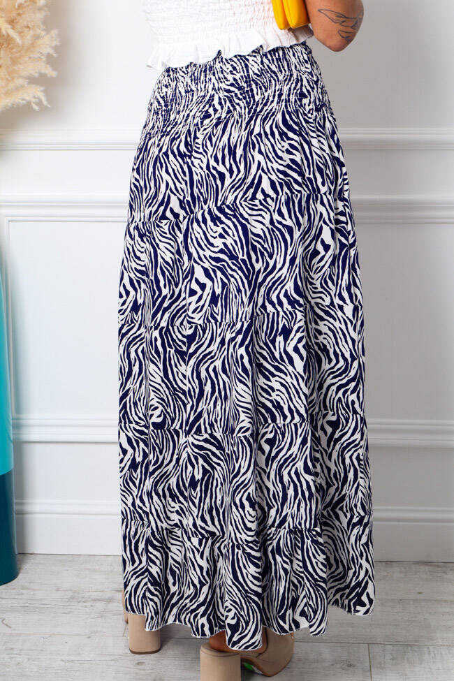 WZORZYSTA SPÓDNICA MAXI Z GUMĄ W PASIE- GRANATOWA