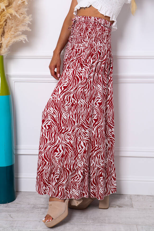 WZORZYSTA SPÓDNICA MAXI Z GUMĄ W PASIE- POMARAŃCZOWA