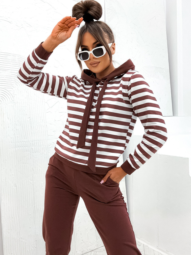 KOMPLET DRESOWY BLUZA W PASKI+ SPODNIE- CZEKOLADOWY