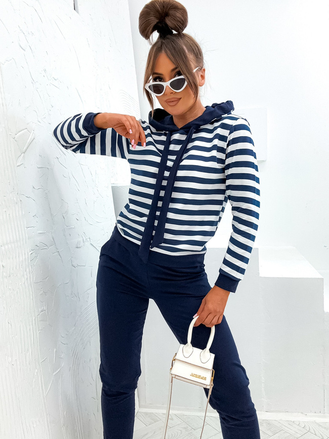 KOMPLET DRESOWY BLUZA W PASKI+ SPODNIE- GRANATOWY