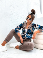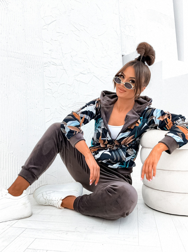 WELUROWY KOMPLET DRESOWY BLUZA W LIŚCIE+ SPODNIE- CZEKOLADOWY
