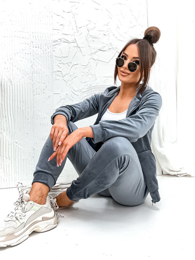 WELUROWY KOMPLET DRESOWY ZAPINANY NA ZAMEK- SZARY