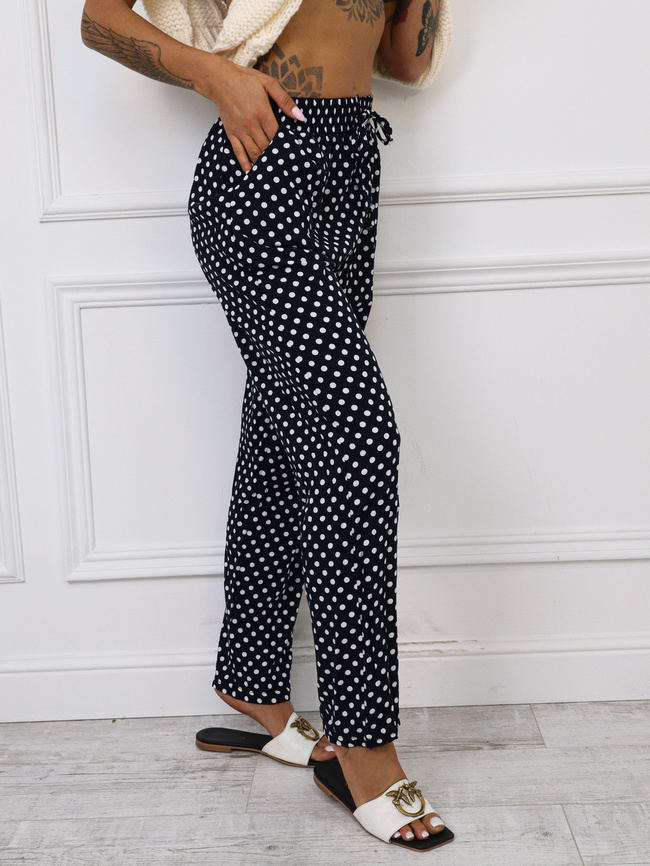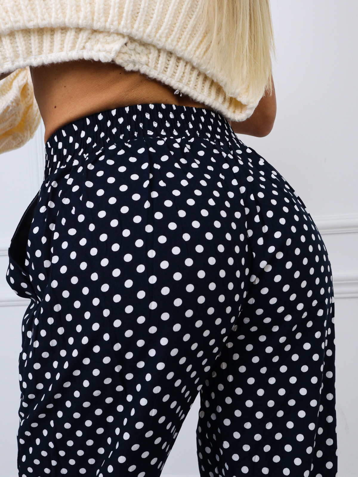 BAWEŁNIANE SPODNIE W KROPKI- GRANATOWY