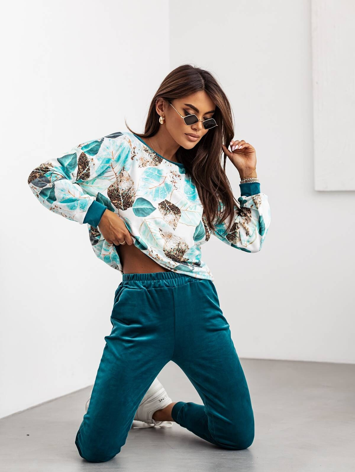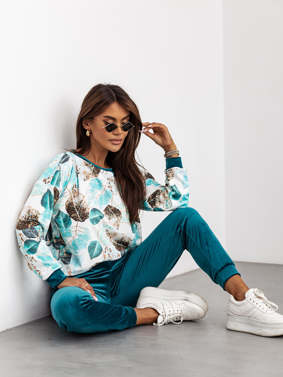 KOMPLET WELUROWY W LIŚCIE- BUTELKOWA ZIELEŃ